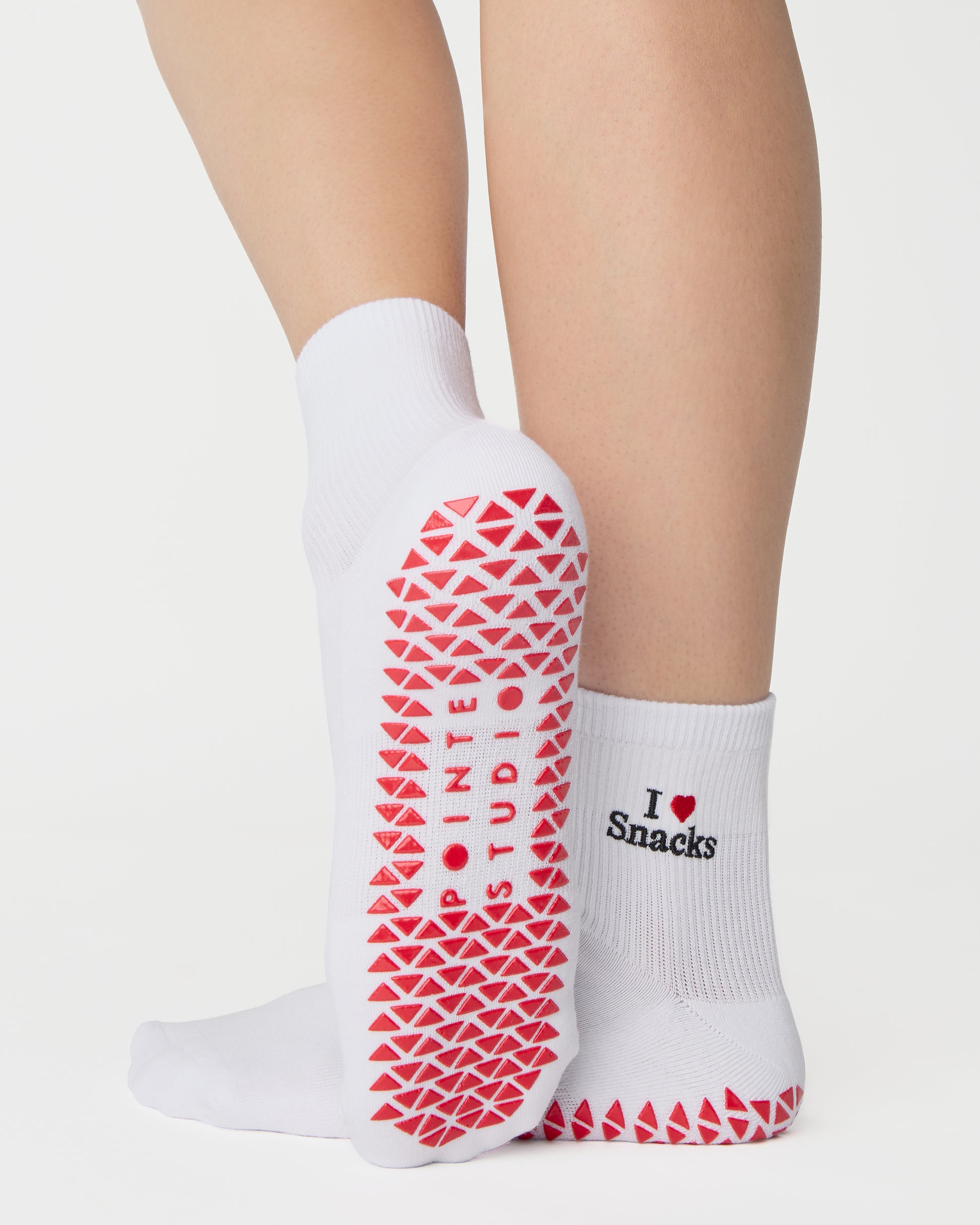 From movement to munchies, the Snacks Grip Ankle sock features full-coverage grip sock is here to support your flow and your cravings. Embroidered with I Love Snacks and designed with no-slip grip, compression arch support, and breathable, moisture-wicking cotton—it brings energy, comfort, and a little snack-loving joy to every session. Because staying fueled is part of the practice.